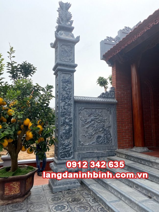 - Đối với những công trình có quy mô nhỏ hơn như nhà thờ họ, nhà từ đường, lăng mộ thì những cột trụ có thể nhỏ gọn hơn. Nên kích thước tiêu chuẩn thường là cao 180cm, thân rộng 20x20cm và đế 30x30cm.